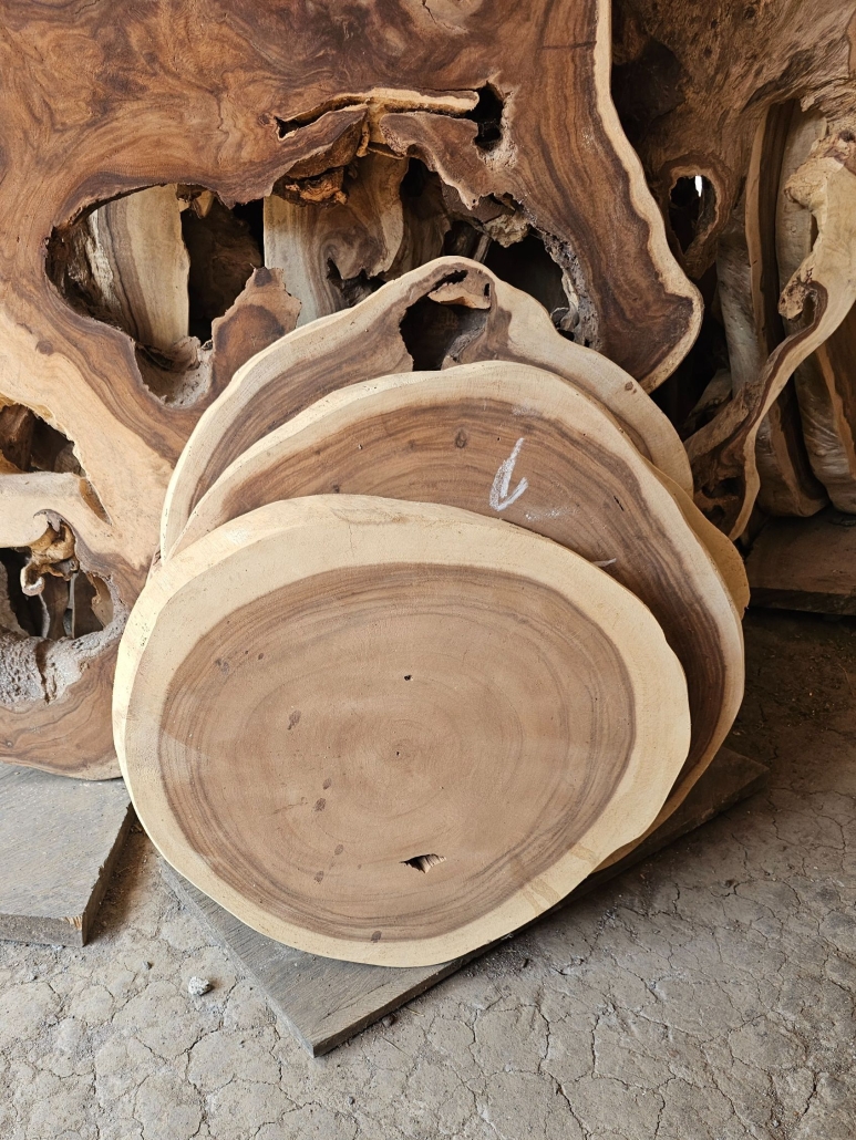 Suar, znany również jako Samanea saman, pochodzi z tropikalnych regionów Azji Południowo – Wschodniej. Jest to drewno o jasnobrązowej barwie z wyraźnym rysunkiem słojów, które nadają mu atrakcyjny wygląd. Charakteryzuje się lekkością, łatwością obróbki oraz odpornością na działanie grzybów i owadów. Drewno Suar jest popularne w produkcji mebli oraz innych elementów wystroju wnętrz, dzięki swojej stabilności i atrakcyjnej estetyce.